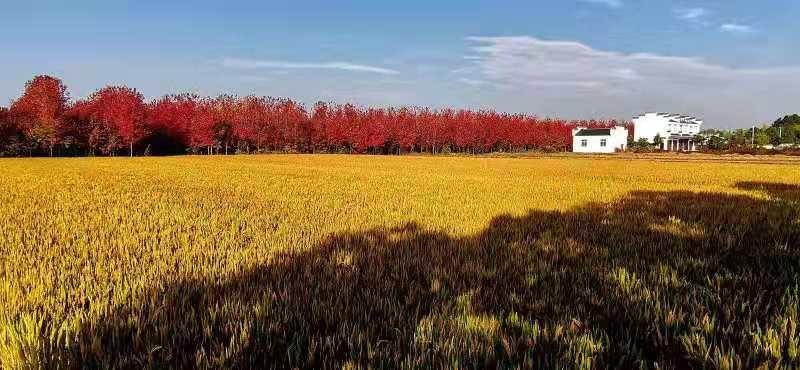 孝满家园,秋染枫林,龙卧陡岗。看红墙广厦,梅窗栖鹊,彤霞绿野,柳岸飘香。园圃缤纷,大棚拥翠,燕雀欢歌唱富强。芳菲处,任蝶迷花海,鱼醉荷塘。