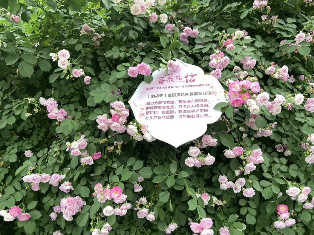 题江苏省生态环境厅所在地蔷薇花墙 安徽 王播春 围段春风做院墙,白云朵朵任飘香。 发芽种子初心定,采蜜蜂儿四处忙。 绿氧舒开新格局,花园留住慢时光。 东君笑把基层下,倾听蔷薇好主张。