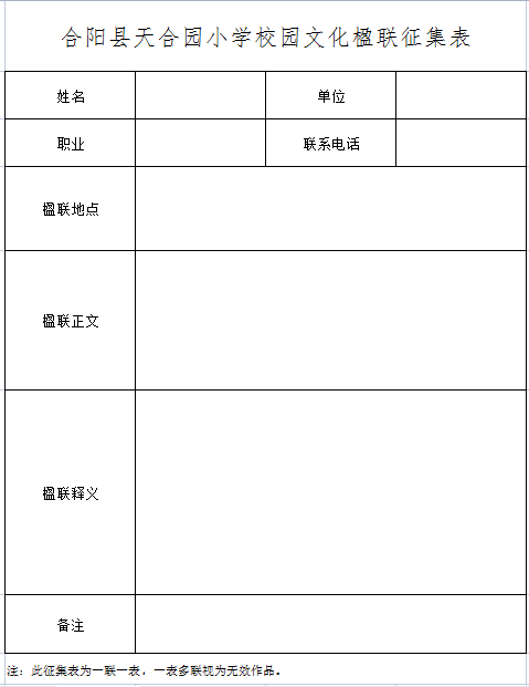 附:合阳县天合园小学校园文化楹联征集表