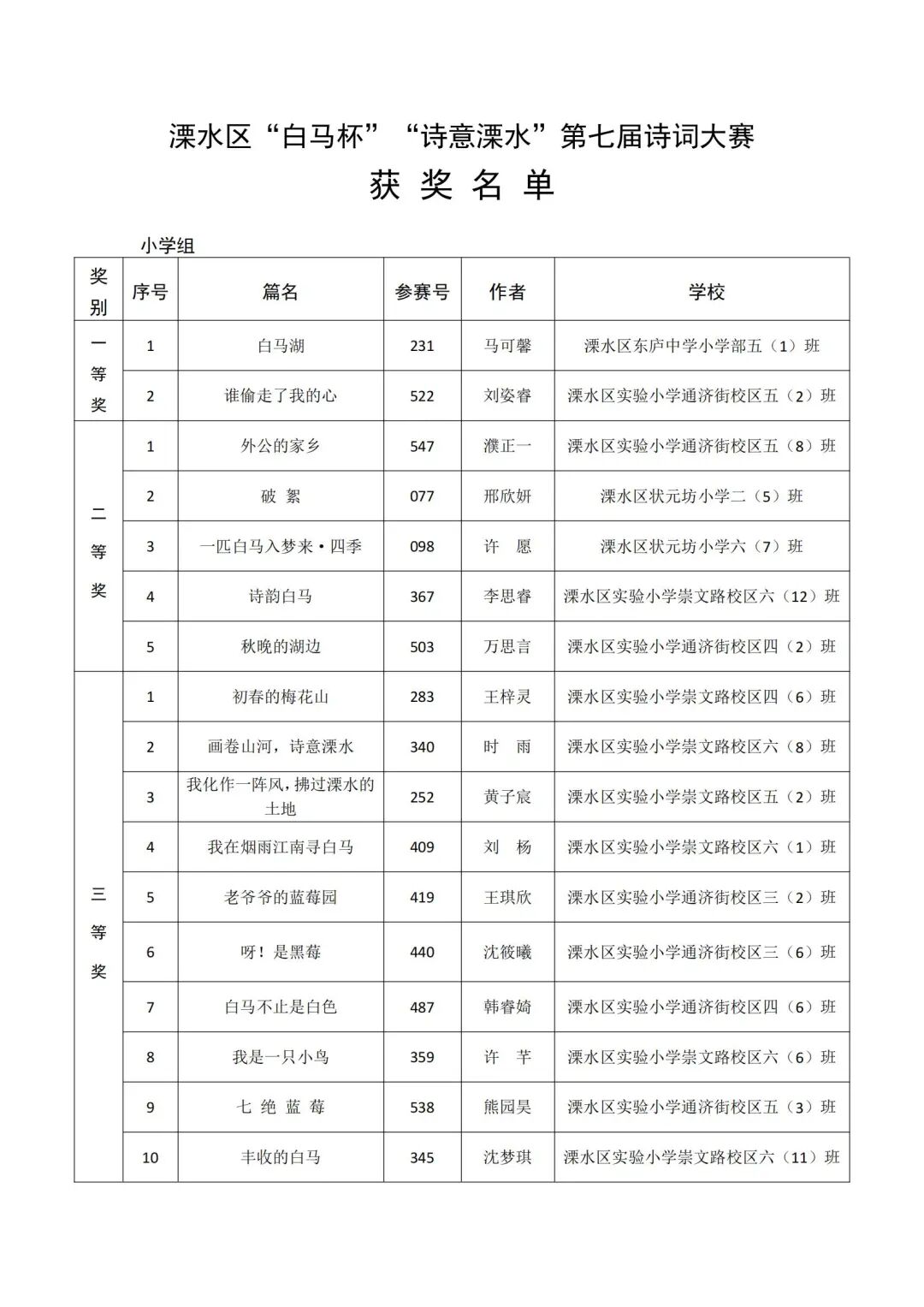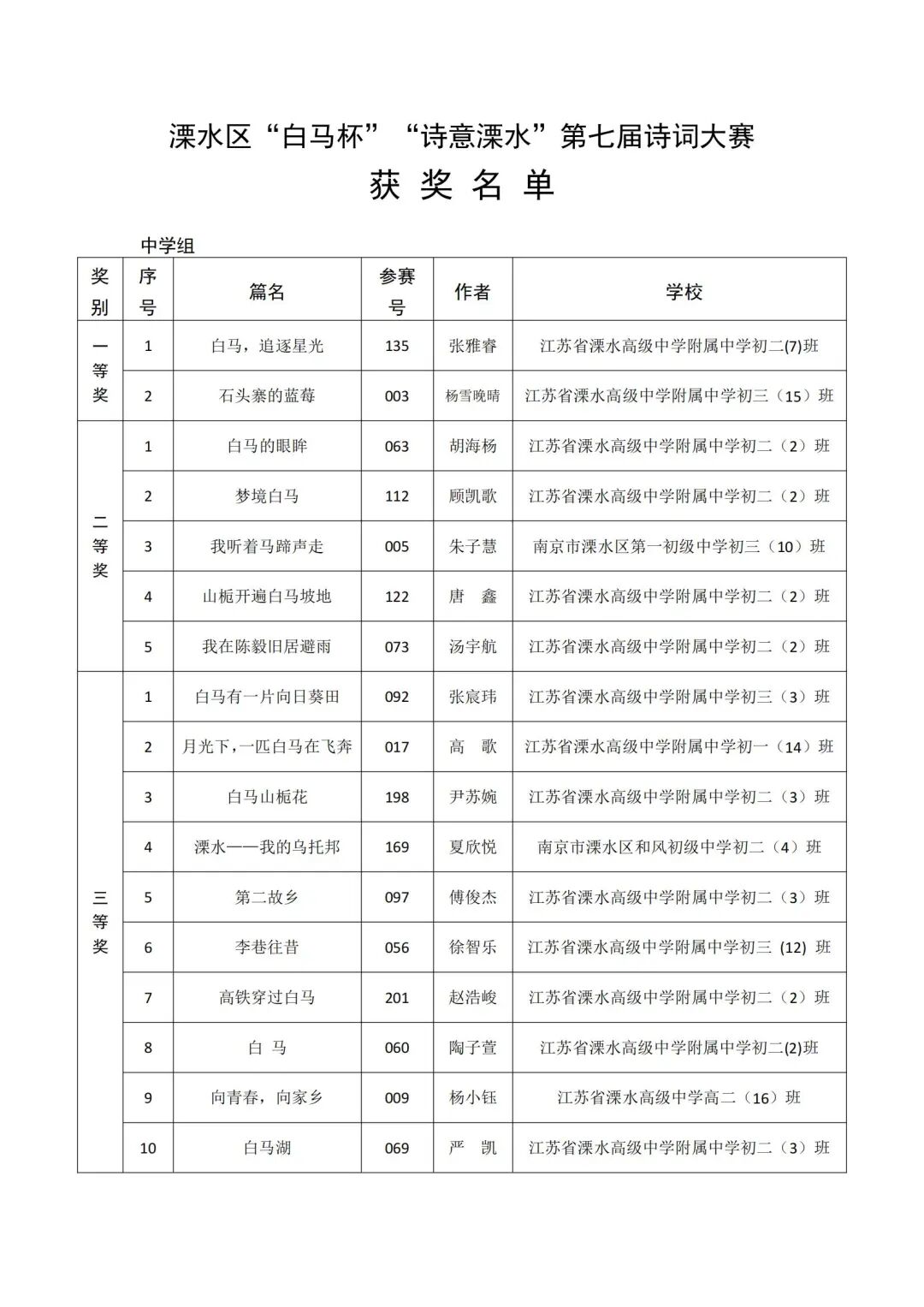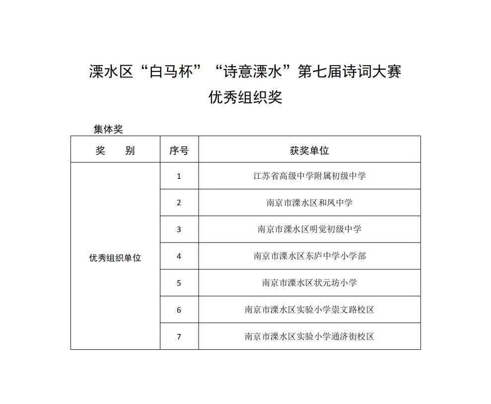 本次评审结果经溧水区公正处现场公正。具体获奖名单如下: