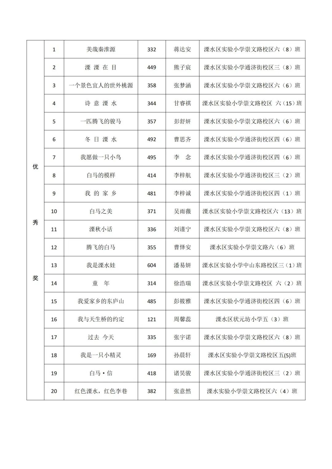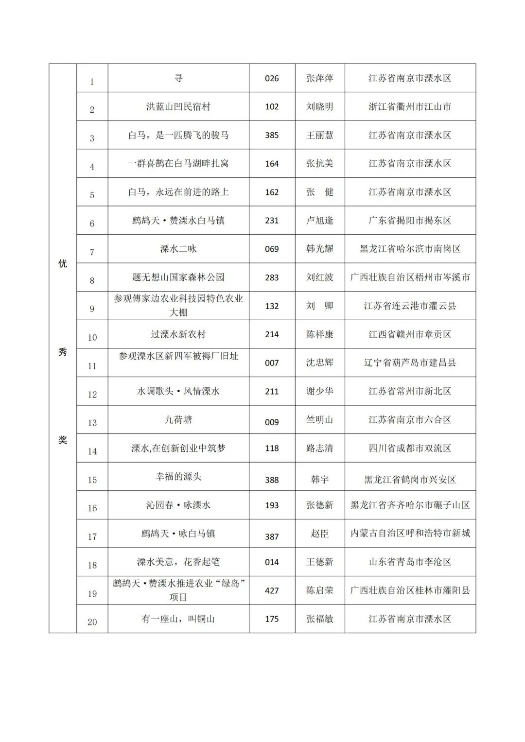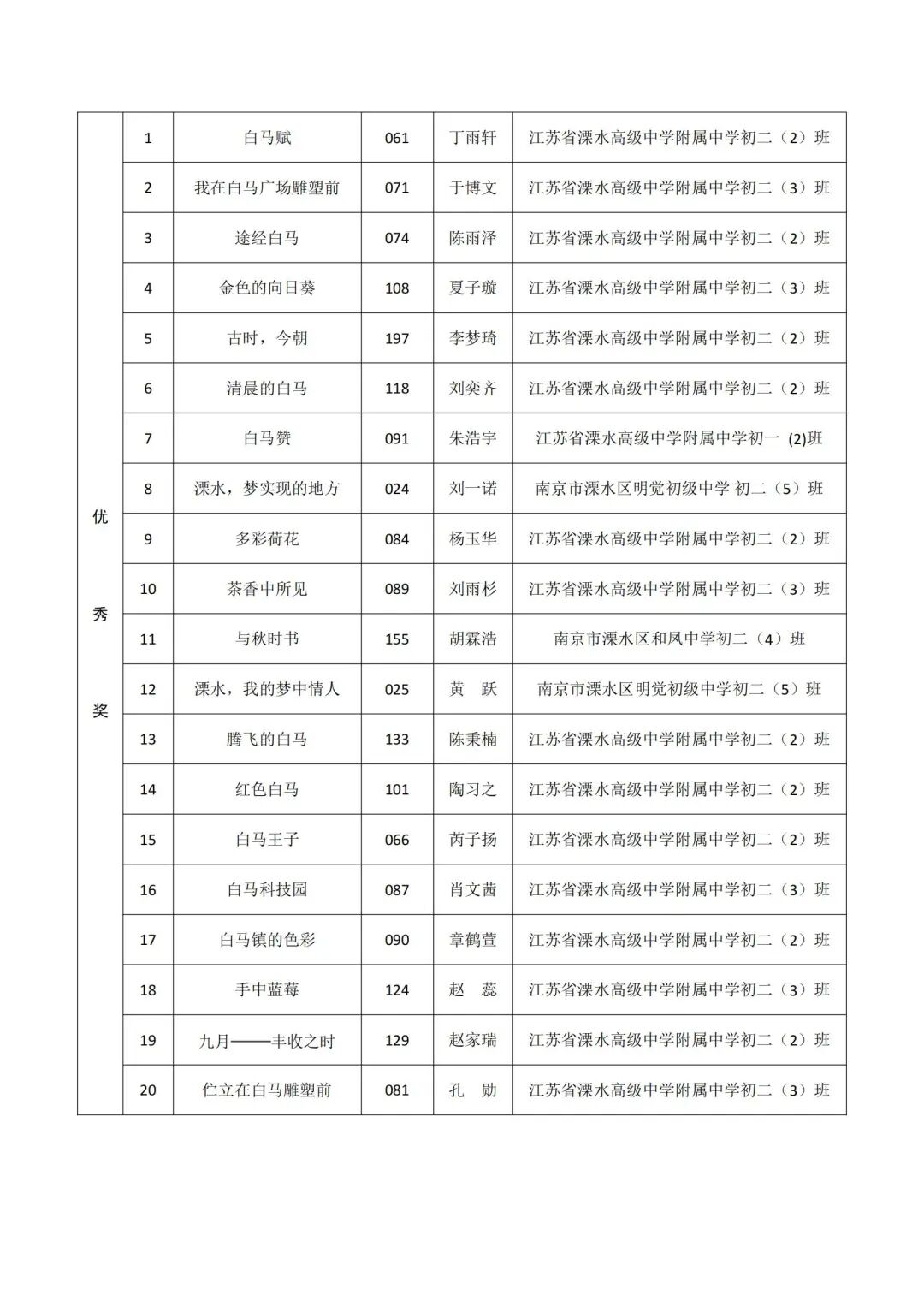 本次评审结果经溧水区公正处现场公正。具体获奖名单如下: