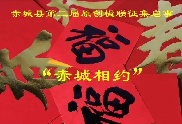 赤城县第二届迎春楹联原创作品征集启事 按:2021年,我们组织了赤城县第一届原创楹联征集活动,收到了来自全国19年省市300多名楹联爱好者及楹联名家的作品,其中不乏楹联精品,为进一步挖掘赤城文化内涵,展示传统文化魅力,进一步弘扬民族文化,推动赤城精神文明建设,由赤城县文化广电和旅游局主办,赤城县图书馆承办的赤城县第二届原创楹联征集活动现在开始啦!希望您的参与,让我们相约赤城。